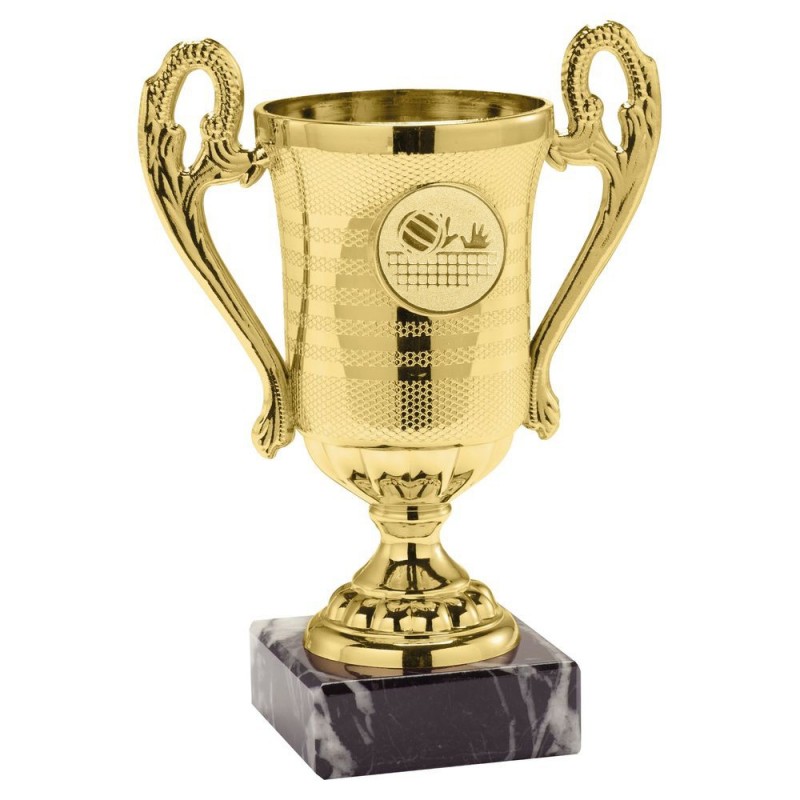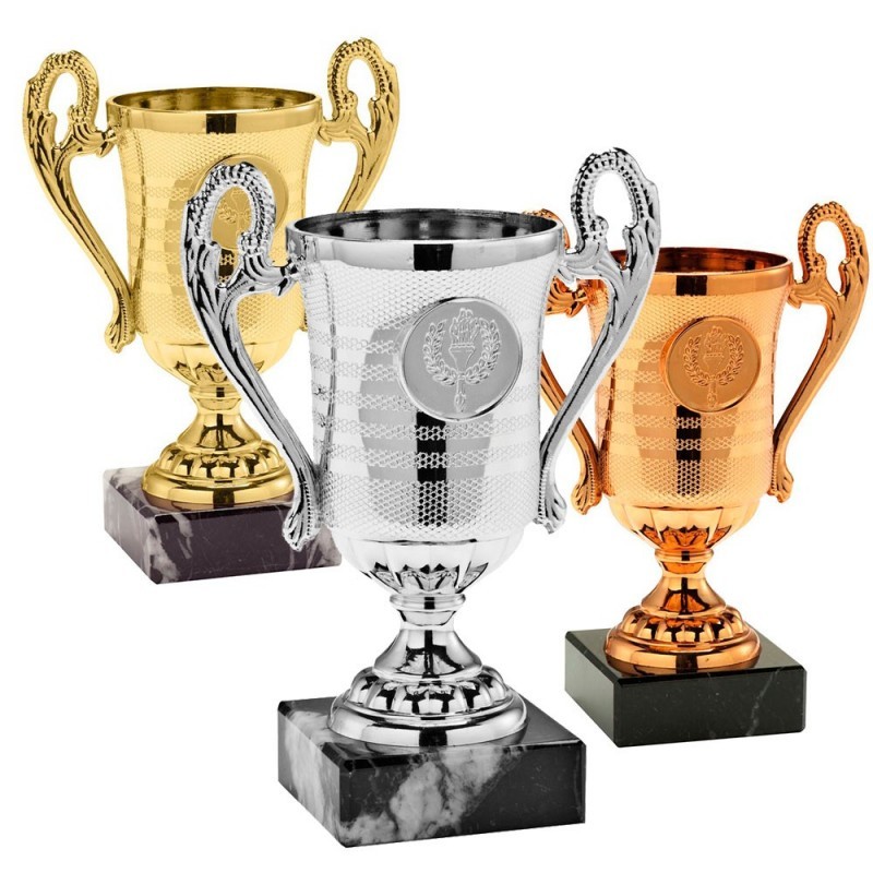 Elegante copa deportiva provista de asas y disponible en distintos acabados; oro, plata y bronce. Perfecta para participantes en competiciones y pruebas deportivas.
