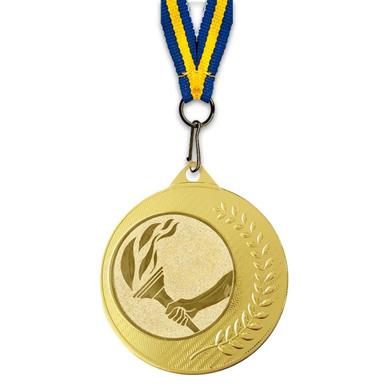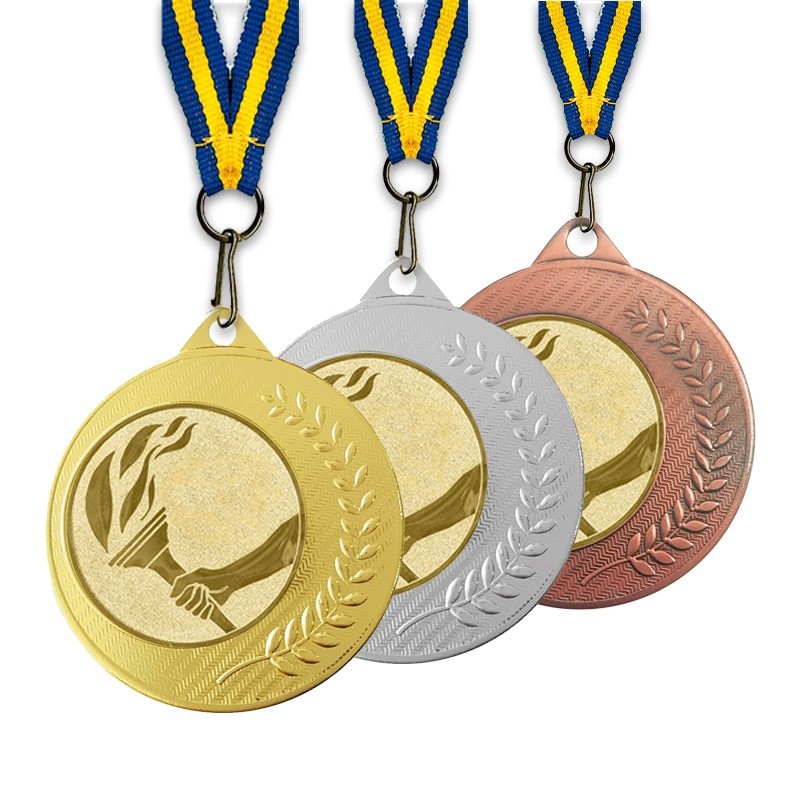 Medalla de Ø40 mm completa, incluye medalla, parte delantera con disponibilidad de elegir un motivo deportivo o cultural y cinta de 10mm.