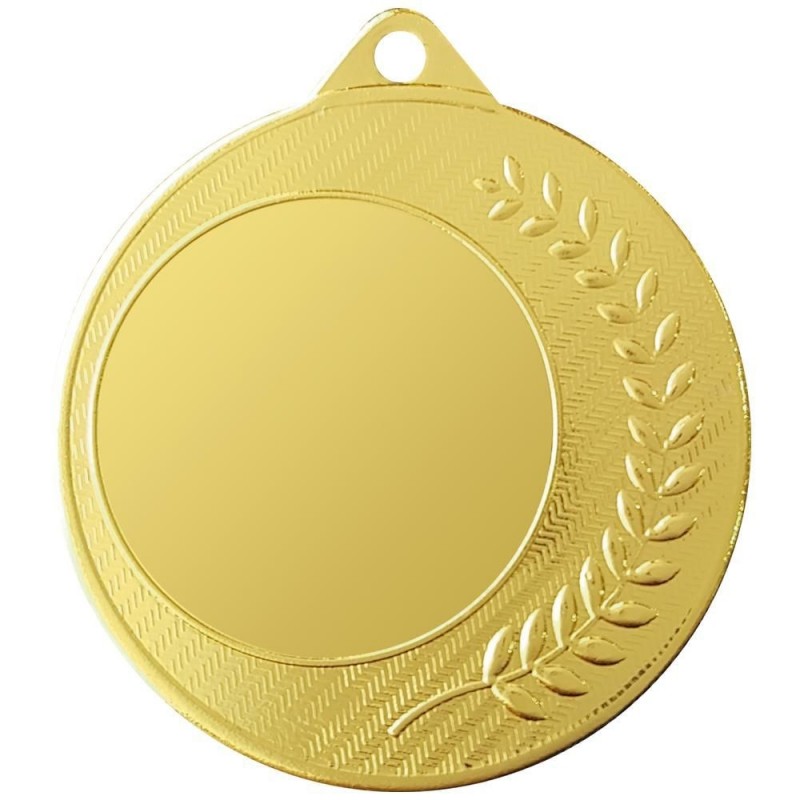 Medalla deportiva perfecta para todo tipo de campeonatos y concursos, con posibilidad de personalizar con texto y perfecta para entregar a jugadores del equipo ganador y demás participantes en campeonatos o concursos. Diseño con una rama de laurel en un lateral.