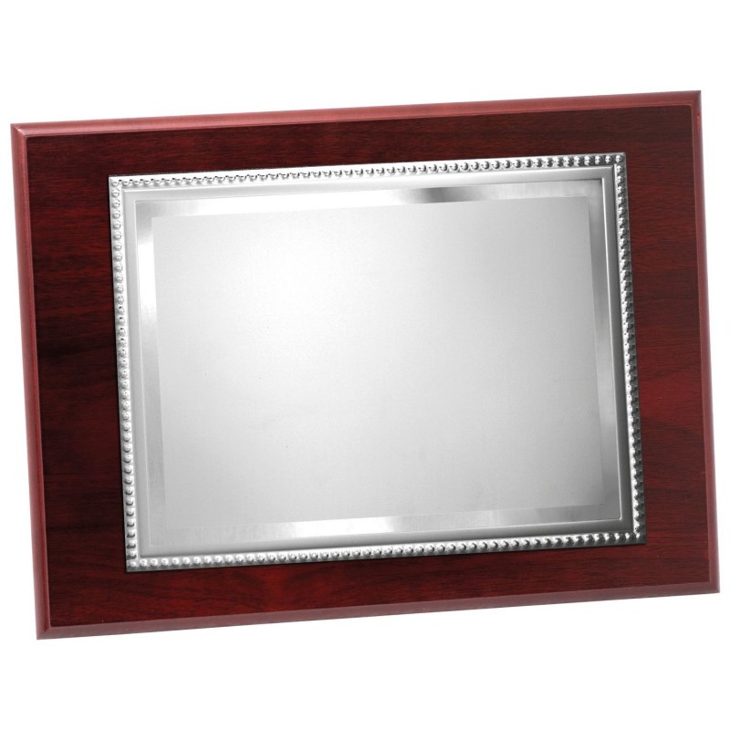 Placa conmemorativa de la Serie PRIZE en color plateado con un elegante acabado con un contorno moderno. Apaisada con base soporte de madera. Fabricada con materiales de gran calidad con una linea tradicional, disponible en tres medidas. Estuche opcional. Grabación láser o color incluida. Placa conmemorativa ideal para entregar a participantes de eventos, conmemoraciones y homenajes a personalidades.
