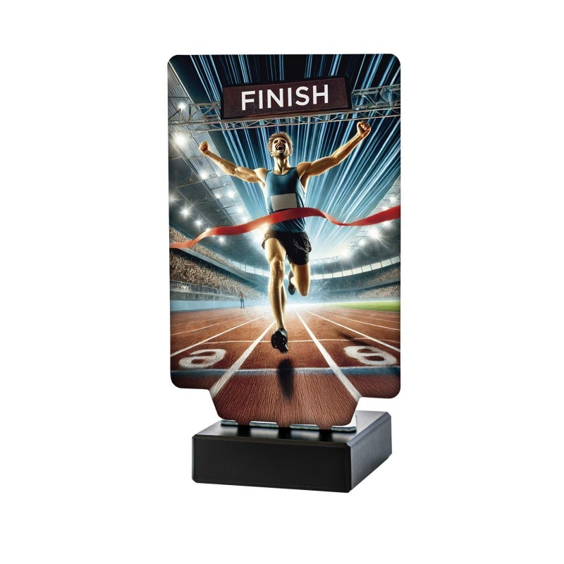 Con un diseño dinámico y moderno, este trofeo refleja la fuerza, la agilidad y el esfuerzo que caracterizan a los corredores en el atletismo. La base de mármol le da un toque de distinción, asegurando que cada premiación sea tan memorable como la victoria alcanzada en la pista.