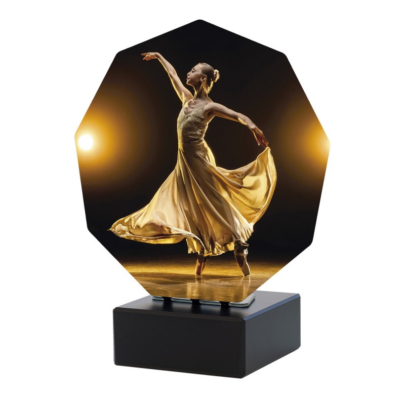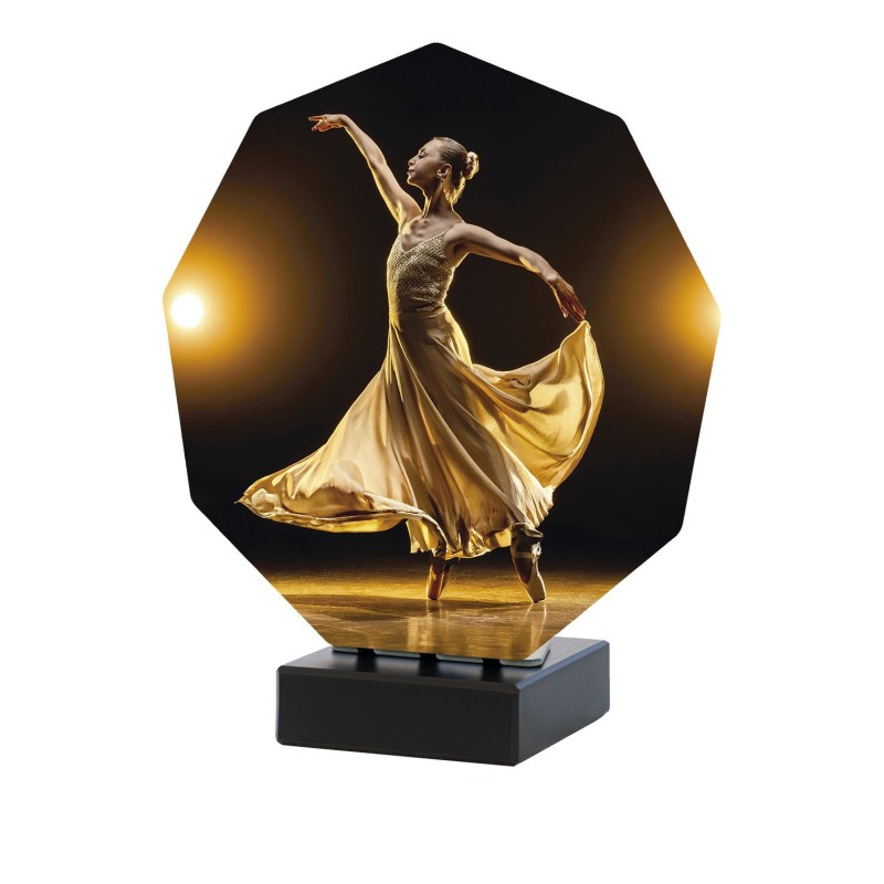 El Trofeo de Baile de la Colección Luxor es una pieza que refleja la pasión, el arte y la dedicación que hay detrás de cada coreografía. Con un diseño estilizado y contemporáneo, este trofeo es ideal para premiar a bailarines en concursos, academias, galas o competiciones de baile.