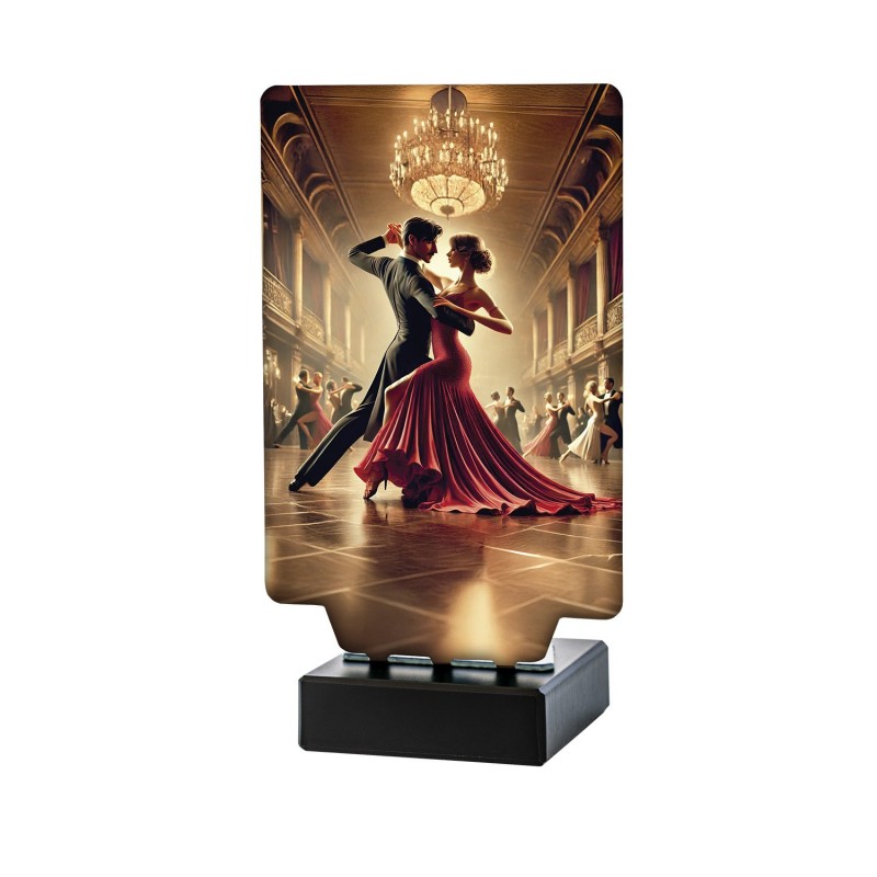 Con un diseño refinado y estilizado, este trofeo refleja la belleza y armonía que hacen del baile de salón un arte único. La base de mármol le otorga un toque de distinción y elegancia, asegurando que cada premiación sea tan espectacular como la actuación que se celebra.