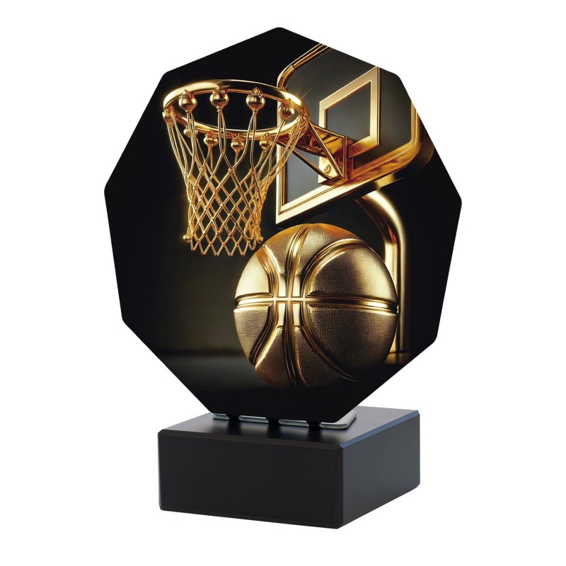 Trofeo elegante para torneos de baloncesto. Colección Luxor, con base de mármol. Disponible en tres tamaños y totalmente personalizable.