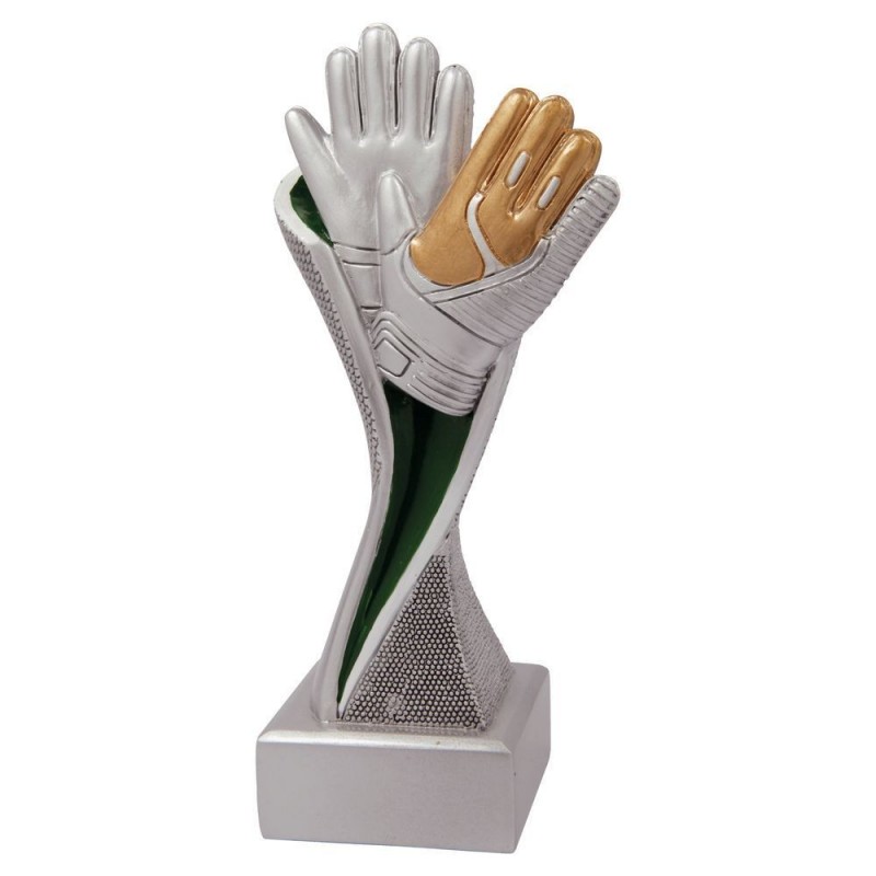 Trofeo deportivo de Fútbol de la Serie Berlín de categoría especial para porteros. Fabricado en resina, resistente y dinámico con una linea moderna y multicolor, de alta calidad con motivo decorativo de los guantes de portero de fútbol. Grabación láser de texto sin cargo adicional. Trofeo ideal para entregar a ganadores y participantes de torneos y partidos de fútbol.