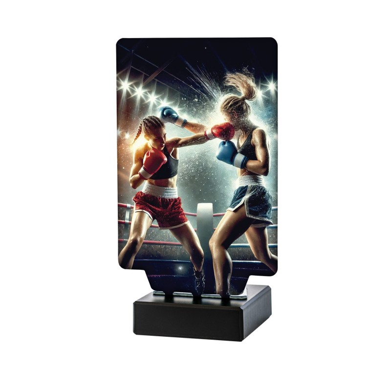 Con un diseño elegante y robusto, este trofeo simboliza la fuerza y la determinación que las boxeadoras femeninas demuestran en cada combate. La base de mármol le otorga un toque de distinción, asegurando que cada premiación sea tan memorable como el esfuerzo realizado en la arena.