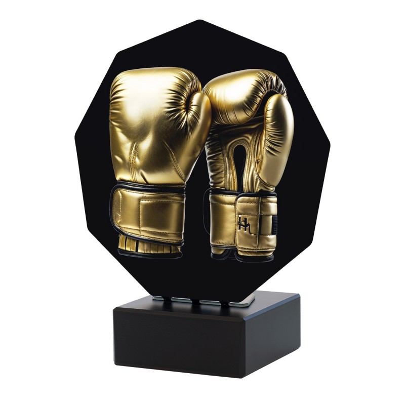 Está disponible en tres tamaños, con una sólida base de mármol que aporta presencia y elegancia. Este trofeo es perfecto para organizaciones deportivas, clubes de boxeo o federaciones que quieran ofrecer un galardón a la altura del esfuerzo de sus deportistas.