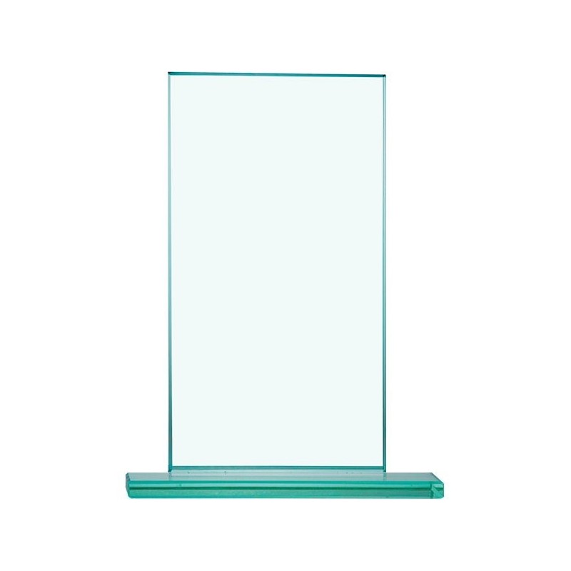 Trofeo de cristal con forma rectangular, base de cristal, categoría eco de linea moderna y actual. Trofeo ideal para entregar a participantes, campeones y finalistas de competiciones así como para conmemoraciones y dedicatorias.