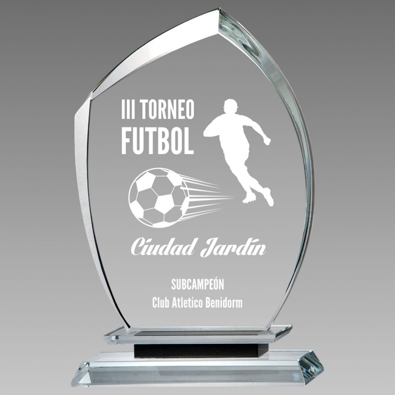 Trofeo de cristal de varias medidas y espesores, categoría luxe con líneas modernas y cantos biselados. Trofeo ideal para entregar a participantes, campeones y finalistas de competiciones así como para conmemoraciones y dedicatorias.