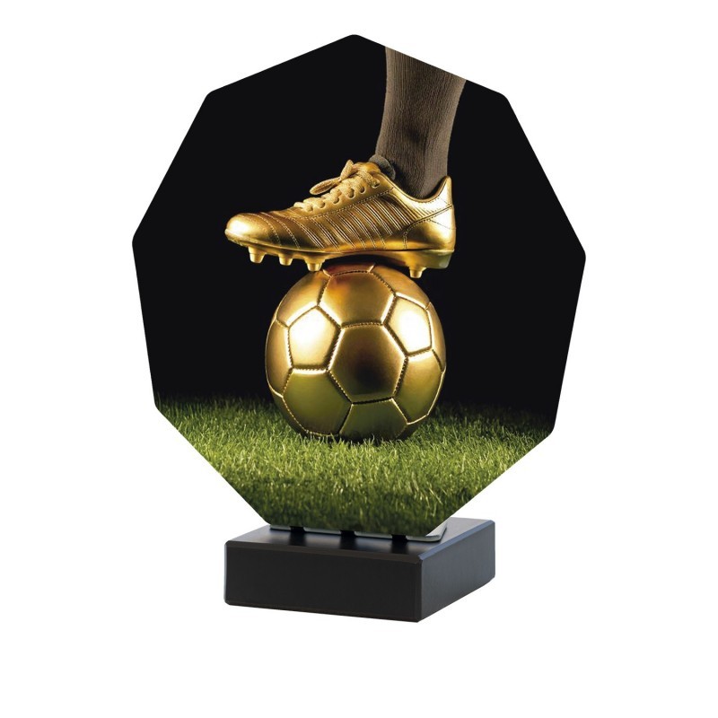 Este trofeo de fútbol, con una estructura estilizada y acabados de alta calidad, se asienta sobre una sólida base de mármol que aporta estabilidad y distinción. Está disponible en tres medidas diferentes, adaptándose a las necesidades de cada categoría o puesto del podio. Es perfecto tanto para campeonatos escolares como para competiciones de clubes o eventos profesionales.