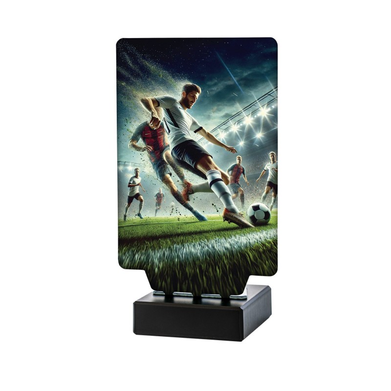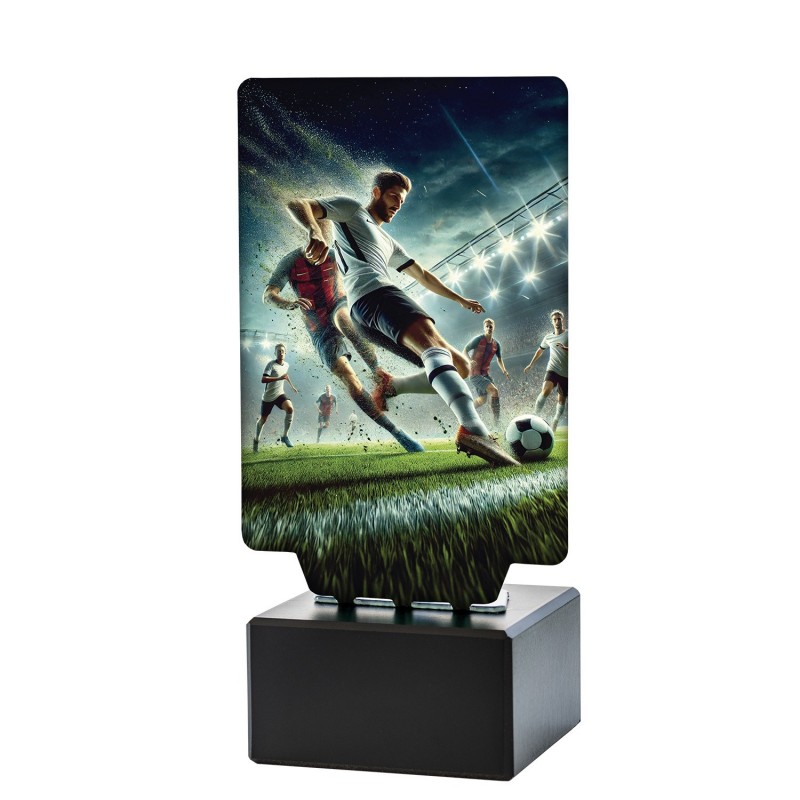 Con un diseño dinámico y elegante, este trofeo refleja la pasión y la energía del fútbol, capturando la esencia del deporte más popular del mundo. La base de mármol le otorga un toque de distinción, asegurando que cada premiación sea memorable.
