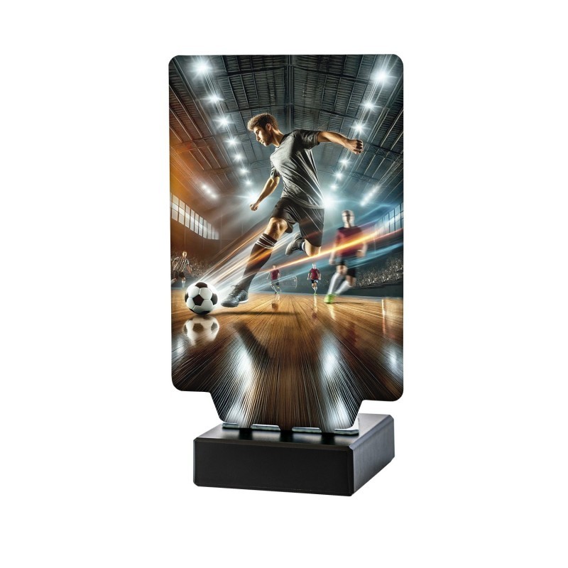 Con un diseño dinámico y elegante, este trofeo refleja la energía y el espíritu competitivo que caracteriza a los jugadores de fútbol sala. La base de mármol añade distinción y presencia, haciendo que cada premiación sea aún más especial.