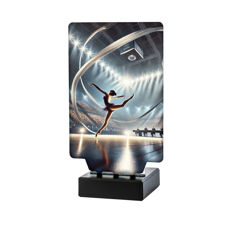 El Trofeo de Gimnasia Rítmica de la Colección Aura está diseñado para premiar la elegancia, la flexibilidad y la destreza que definen a las campeonas de gimnasia rítmica. Este trofeo metálico, con una robusta base de mármol, es ideal para reconocer el esfuerzo, la técnica y la gracia en competiciones tanto a nivel escolar como profesional.