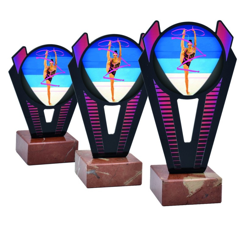 Trofeo Gimnasia Rítmica 0021: Trofeo deportivo de metacrilato de la serie 0021 con disco central de gimnasia rítmica. Fabricado en metacrilato con una línea moderna y actual, de gran calidad y con base de mármol. Trofeo ideal para entregar a participantes, campeones y finalistas de competiciones de gimnasia rítmica. Disponible en 3 tamaños. La mejor calidad en trofeos deportivos la encontrarás en maxitrofeo.com.