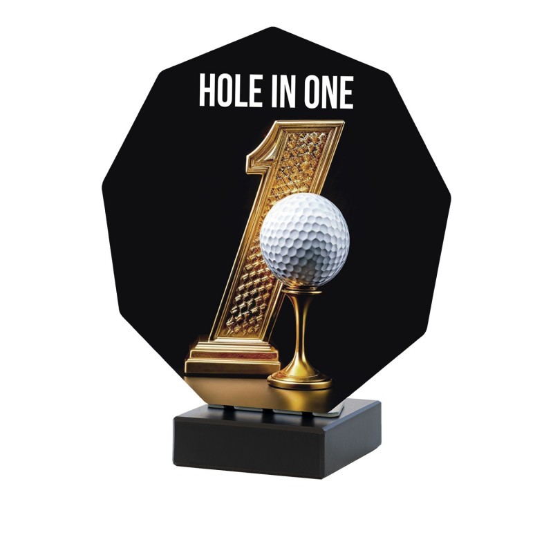 El Trofeo Golf Hoyo en 1 de la Colección Luxor es la mejor forma de conmemorar uno de los logros más espectaculares del golf: un hoyo en uno. Este trofeo ha sido diseñado con líneas limpias y modernas que reflejan la excelencia y el momento único que representa esta hazaña.