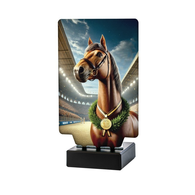 Gracias a nuestro servicio de personalización, puedes añadir el nombre del evento, el nombre del jinete o una dedicatoria especial. En MaxiTrofeo, ofrecemos envío exprés desde 24h y atención especializada para que tu trofeo sea perfecto.