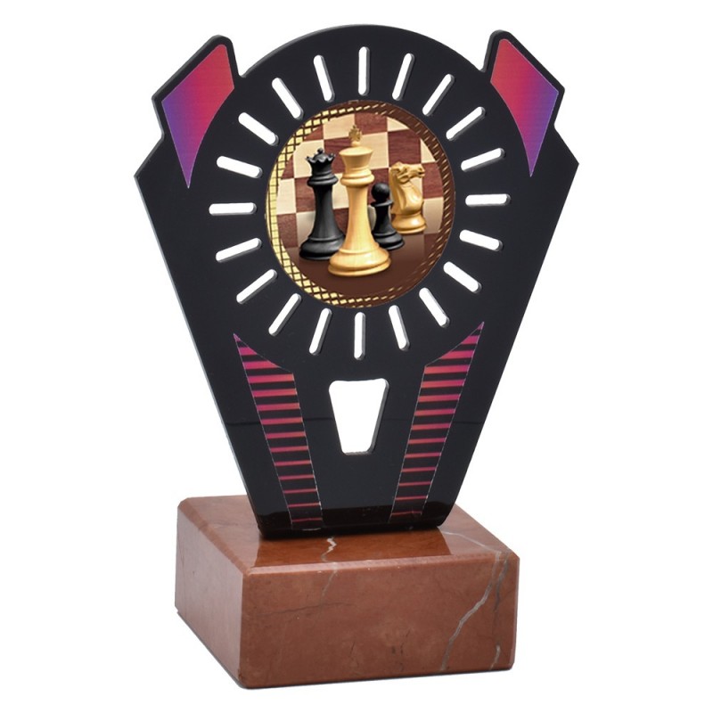 Trofeo deportivo de metacrilato de la serie 0021 con disco central de ajedrez incluido. Fabricado en metacrilato con una línea moderna y actual, de gran calidad y con base de mármol. Trofeo ideal para entregar a participantes, campeones y finalistas de competiciones y torneos de ajedrez.