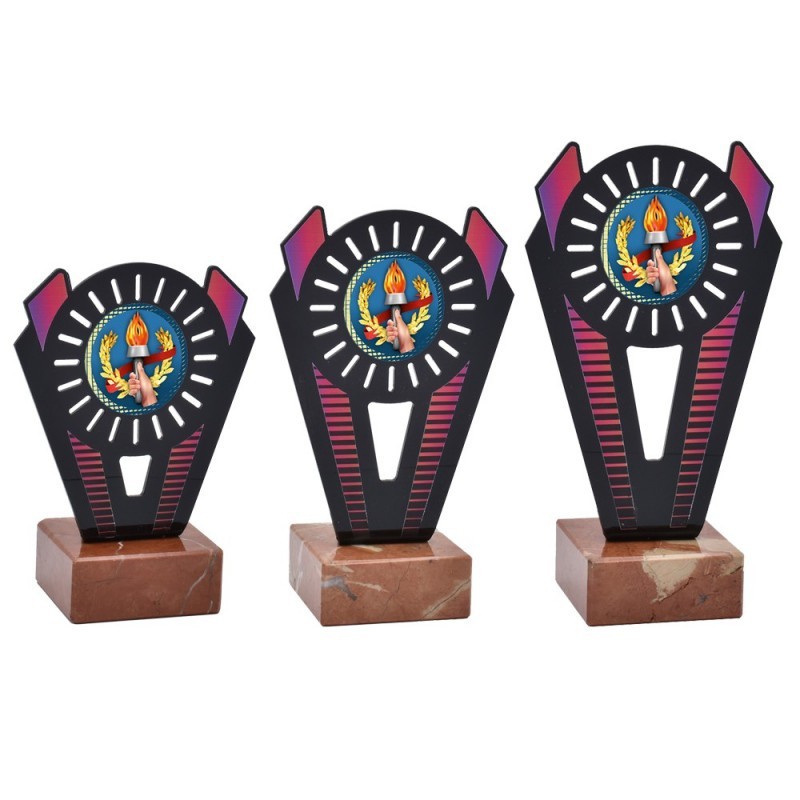 Trofeo Alegórico 0021: Trofeo deportivo de metacrilato de la serie 0021 con disco central de antorcha con corona de laurel incluido. Fabricado en metacrilato con una línea moderna y actual, de gran calidad y con base de mármol. Trofeo ideal para entregar a participantes, campeones y finalistas de competiciones y torneos deportivos. Disponible en 3 tamaños. La mejor calidad en trofeos deportivos la encontrarás en maxitrofeo.com.