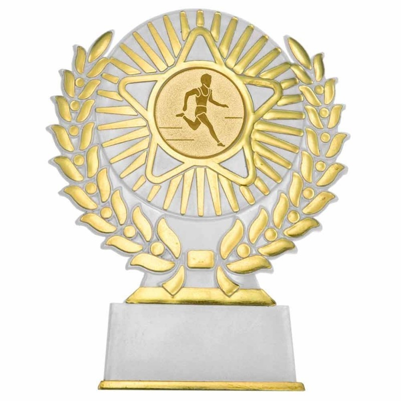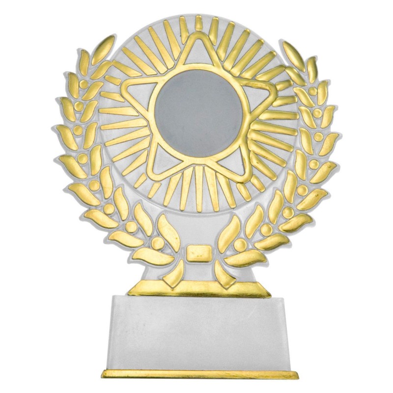 Trofeo deportivo personalizable con cualquier deporte con la posibilidad de cambiar el disco central de 25mm de la más alta calidad. El trofeo está frabicado en material PVC y en una única medida de 11,5 cm. Incluye como opción la grabación de texto.