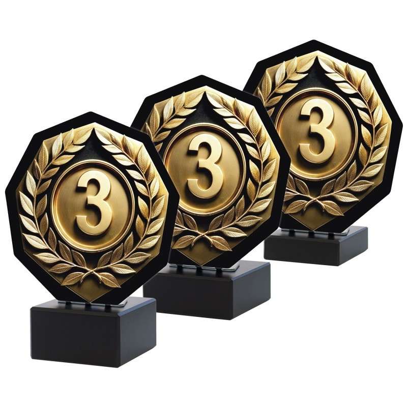 Trofeo elegante para tercer puesto, de la colección Luxor. Disponible en tres tamaños, con base de mármol. Personalízalo con texto o logo. Envío exprés.