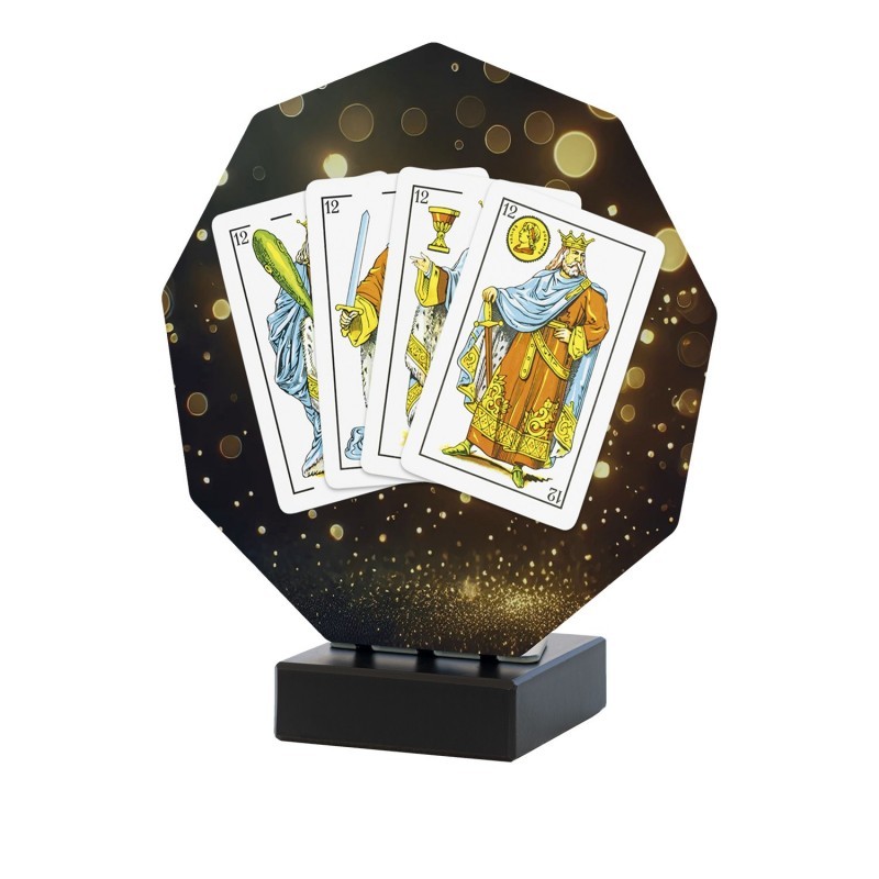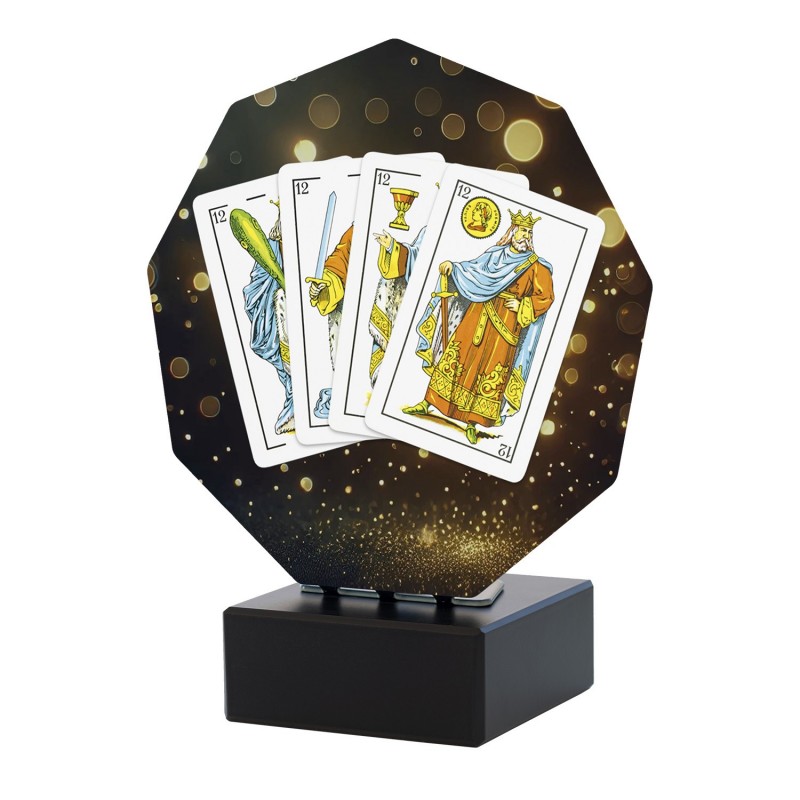 El Trofeo Naipes 4 Cartas de la Colección Luxor está pensado para destacar el ingenio, la estrategia y el espíritu competitivo en los juegos de cartas. Perfecto para torneos sociales, campeonatos de club o eventos recreativos donde los naipes son protagonistas.