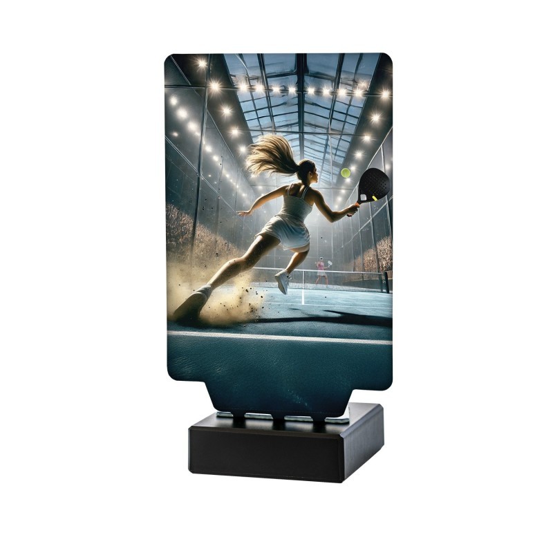 Con un diseño elegante y moderno, este trofeo refleja la energía y la estrategia necesarias para sobresalir en el pádel femenino. La base de mármol le otorga un toque de distinción, asegurando que cada premiación sea memorable para la ganadora.