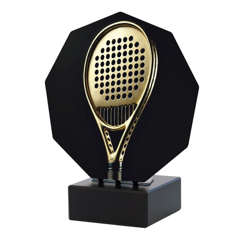 El Trofeo de Pádel Colección Luxor combina diseño contemporáneo y sofisticación para rendir homenaje al esfuerzo, la técnica y la pasión que se vive en cada partido de pádel. Con líneas modernas y una estética cuidada, es el galardón ideal para torneos que quieren destacar en estilo y presencia.