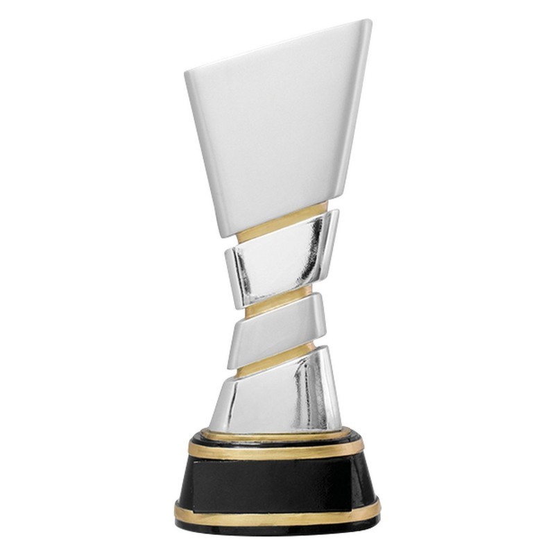 Trofeo Resina Neutro 4450: Trofeo de resina de estilo clásico perfecto para entregar en todo tipo de eventos, tanto competiciones deportivas como culturales o de ocio. Su diseño combina el color plata con detalles en dorado y una base de color negro. Incluye personalización del trofeo.