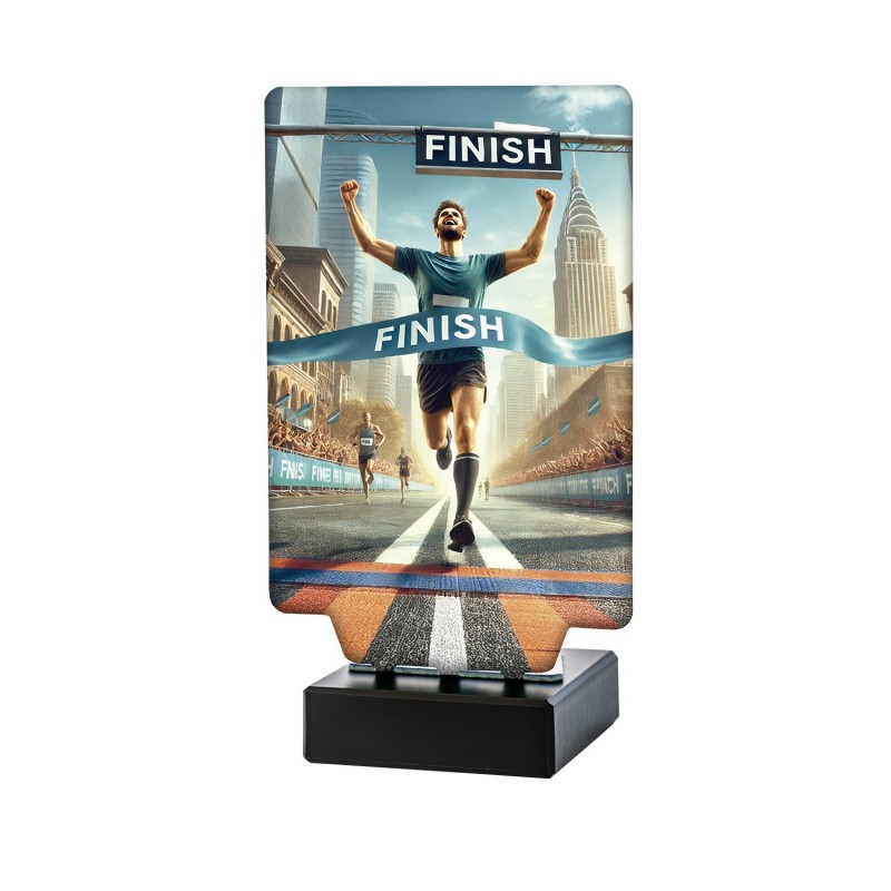 Con un diseño dinámico y elegante, este trofeo refleja la pasión, el esfuerzo y la dedicación de todos los corredores que se enfrentan a los desafíos de una carrera popular. La base de mármol le da un toque de distinción, asegurando que cada premiación sea tan especial como el recorrido alcanzado.
