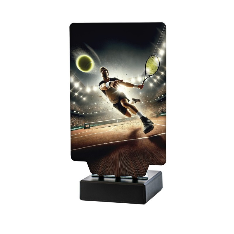 El Trofeo Tenis Masculino de la Colección Aura es el galardón ideal para premiar a los campeones masculinos de tenis, reconociendo su destreza, concentración y estrategia en la cancha. Este trofeo metálico, con una sólida base de mármol, es perfecto para reconocer a los mejores jugadores de tenis en competiciones locales, federadas o profesionales.