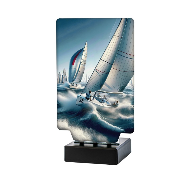 Con un diseño elegante y dinámico, este trofeo refleja la velocidad, la técnica y la precisión necesarias para dominar la vela ligera. La base de mármol le otorga un toque de distinción, asegurando que cada premiación sea tan memorable como la victoria en el agua.