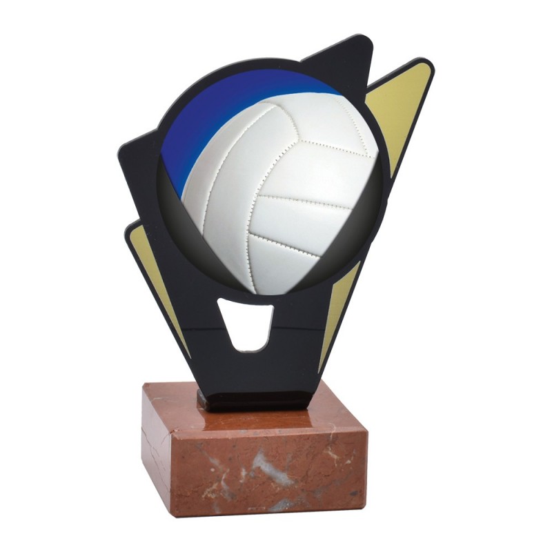 Trofeo deportivo de metacrilato de la serie 0031 con disco central de un balón de voleibol. Fabricado en metacrilato con una línea moderna y actual, de gran calidad y con base de mármol. Trofeo ideal para entregar a participantes, campeones y finalistas de competiciones y torneos de voleibol.